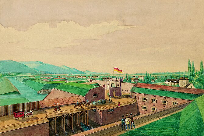 Auf dem Wiener Kongress waren Luxemburg, Landau und Mainz zu Bundesfestungen erklärt worden. Zum Schutze von Süddeutschland sollte mit Hilfe der von Frankreich zu zahlenden Kriegsentschädigung eine vierte Bundesfestung ausgebaut werden. In Frage kamen Ulm und Rastatt. Da man sich lange nicht auf eine von beiden einigen konnte, beschloss die Bundesversammlung in Frankfurt schließlich 1841 beide Festungen auszubauen. 1866 stellten Baden, Österreich und Preußen die Festungsbesatzung.